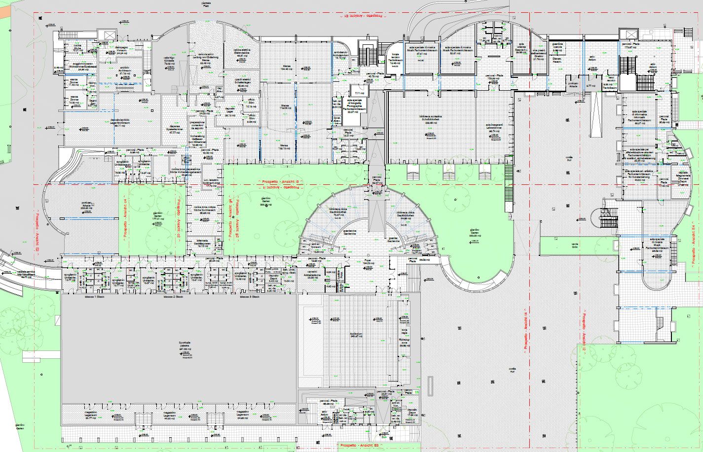 Ricostruzione tridimensionale del complesso scolastico Archimede-Longon con strumentazione laser scanner e redazione di planimetrie se sezioni in formato CAD.